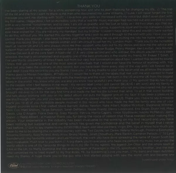 Cello Bryony James | Cello, Arranged By [String] Rosie Danvers | Double Bass Richard Pryce | Harp Camilla Pay | Mixed By Phil Tan | Piano Reuben James | Producer Fraser T Smith | Recorded By Manon Grandjean | Viola Emma Owens, Nick Ban | Violin Anna Croad, Debbie Widdup, Eleanor Mathieson, Jenny Sacha, Natalia Bonner, Patrick Kiernan, Sally Jackson, Stephen Morris (4) | Vocals Calum Scott | Written-By Calum Scott, Corey Sanders, Jamie Scott