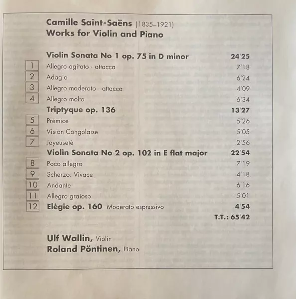 | Artiest | Camille Saint-Saëns | Ulf Wallin | Roland Pöntinen |