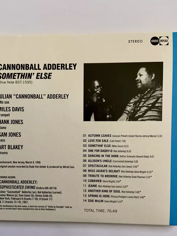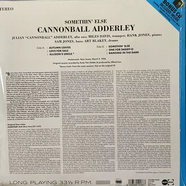 One of the most famous recording dates in modern jazz history, the chemistry between Adderley, Miles Davis, Hank Jones, Sam Jones and Art Blakey is amazing. Their radical reworkings of "Autumn Leaves" and "Love For Sale" are masterpieces. The title track by Miles and "One For Daddy-O" by Nate Adderley are classics. Includes additional photos by ...