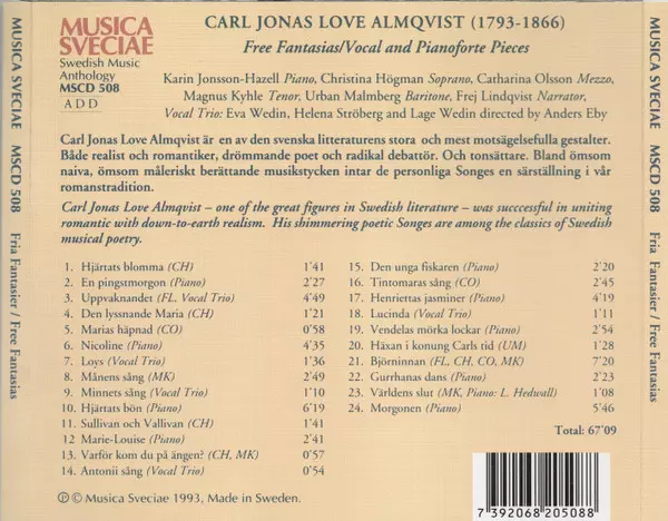 | Titel | Fria Fantasier - Sånger Och Klaverstycken = Free Fantasias / Vocal And Pianoforte Pieces |