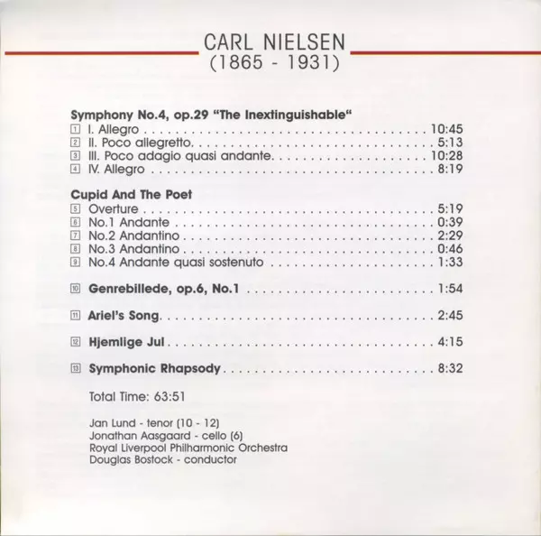 | Artiest | Royal Liverpool Philharmonic Orchestra | Carl Nielsen | Douglas Bostock |