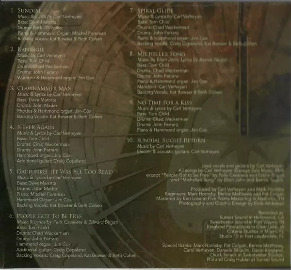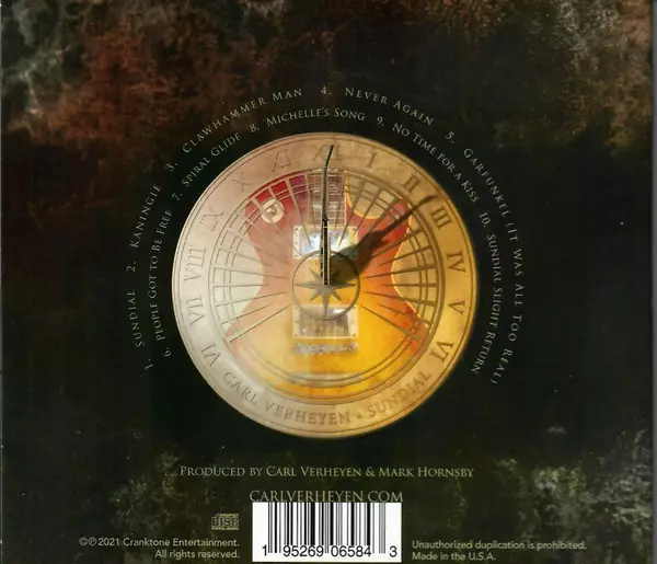 Carl Verheyen: Sundial DIGI versie op CD in digipack editie. Deze specifieke uitgave werd uitgebracht in VS bij uitgeverij Cranktone Entertainment op 4. september 2021. Album valt binnen het genre Rock, Jazz, Ballade, Ska, Fusion, Funk en Afrobeat. Digipack.