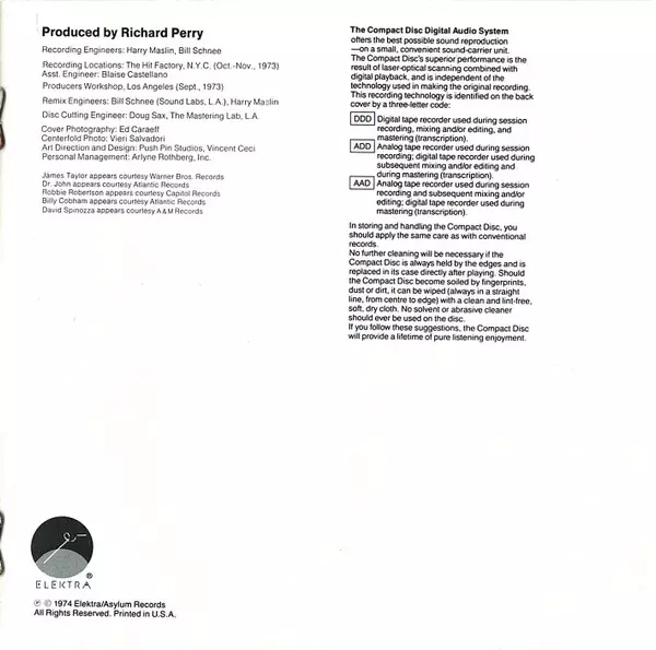 Acoustic Guitar James Taylor (2) | Arranged By [Strings And Woodwinds Arr. By], Conductor [Strings And Woodwinds Cond. By] Paul Buckmaster | Bass Klaus Voormann | Drums Andy Newmark | Electric Guitar [Elec. Guitar] Jimmy Ryan (3) | Organ Ken Ascher | Piano Carly Simon