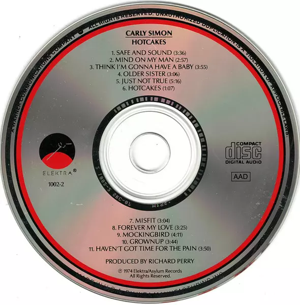 Carly Simon: Hotcakes versie op CD in standaard editie. Deze specifieke uitgave werd uitgebracht in VS bij uitgeverij Elektra op 10. november 2017. Album valt binnen het genre Rock, Pop, Pop Rock en Soft Rock.