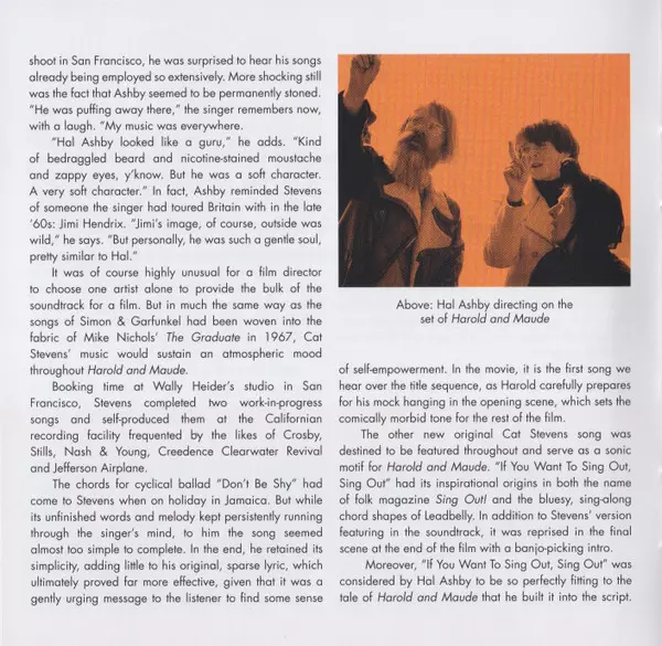 Poprvé je na něm obsaženo devět původních písní Cata Stevense a další dialogy a instrumentální hudba z filmu. V archivu Island Records byly objeveny dříve neobjevené zvukové mastery písní "Don't Be Shy" a "If You Want To Sing Out, Sing Out" a veškerý zvuk byl remasterován ve světoznámých studiích Abbey Road.