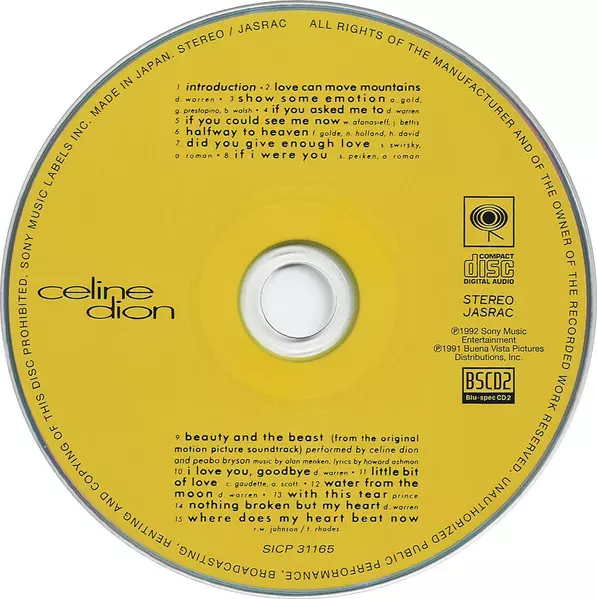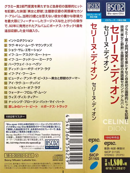 Céline Dion: Celine Dion versie op CD in standaard editie. Deze specifieke uitgave werd uitgebracht in Japan bij uitgeverij Epic op 8. juni 2018.