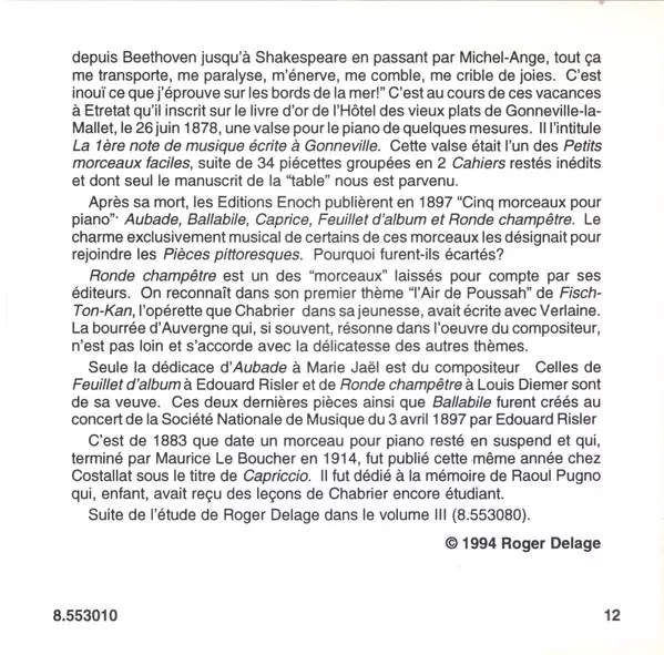 | Artiest | Emmanuel Chabrier | Georges Rabol |