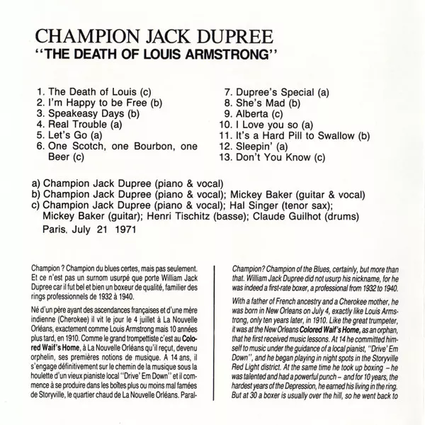 | Artiest | Champion Jack Dupree | Hal Singer | Mickey Baker |