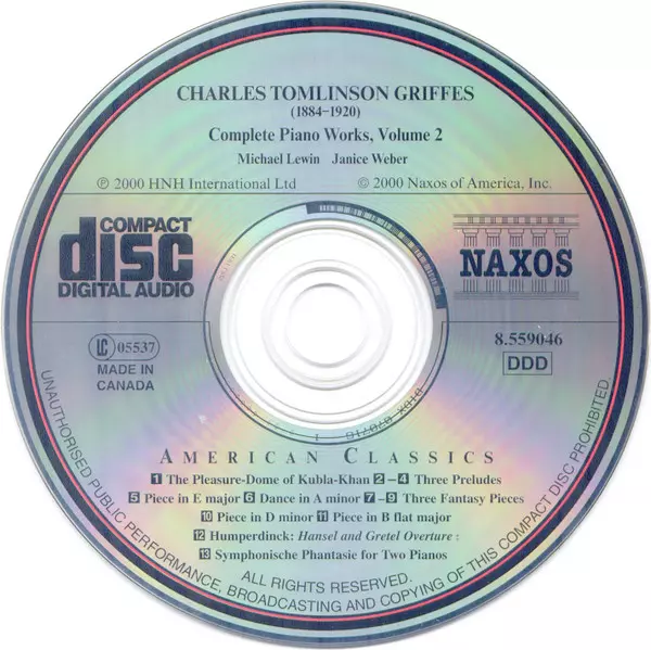 | Artiest | Charles Griffes | Michael Lewin | Janice Weber |