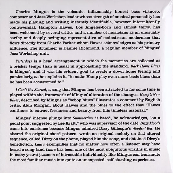 | Artiest | Charles Mingus | Hampton Hawes | Dannie Richmond |