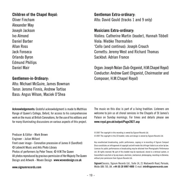 | Artiest | Andrew Gant | Choir Of The Chapels Royal | Musicians Extra-Ordinary |
