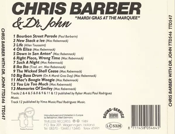 | Artiest | Dr. John | Chris Barber |