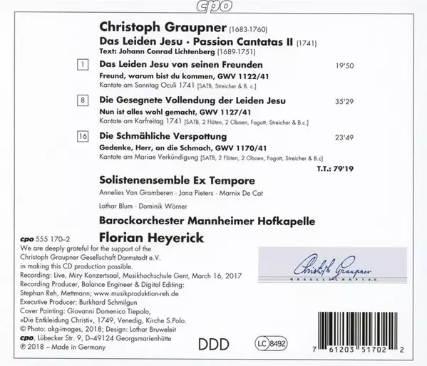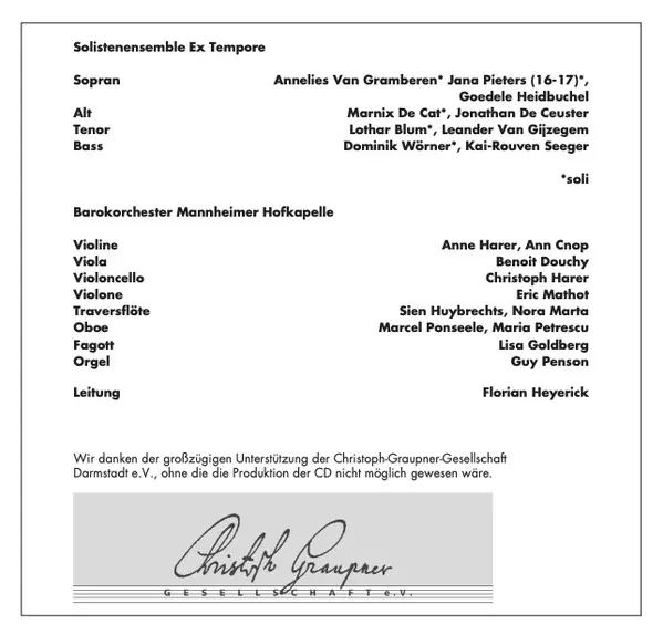 | Artiest | Christoph Graupner | Florian Heyerick | Ex Tempore | Mannheimer Hofkapelle |