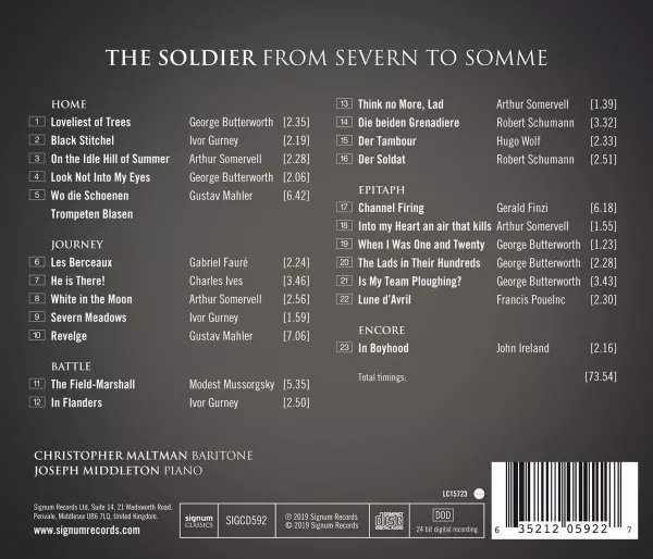 | Artiest | Christopher Maltman | Joseph Middleton |