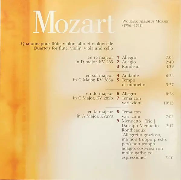 | Artiest | Wolfgang Amadeus Mozart | Alison McGillivray | Monica Huggett | Sonnerie | Claire Guimond | Emilia Benjamin |