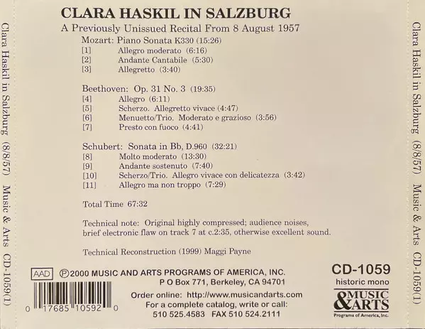 | Titel | The Salzburg Recital / 8 August 1957 / Previously Unissued |