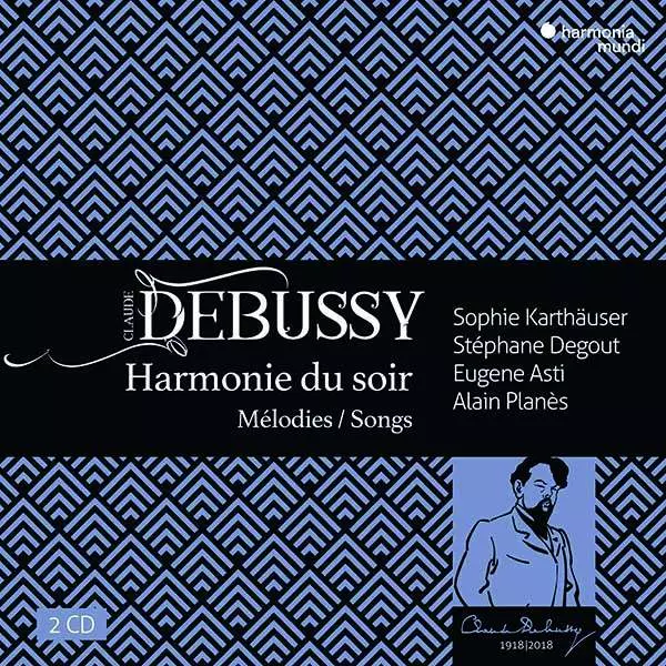 Claude Debussy: Harmonie du soir Mélodies / Songs versie op 2CD in standaard editie. Deze specifieke uitgave werd uitgebracht in Frankrijk bij uitgeverij Harmonia Mundi op 24. augustus 2018. Album valt binnen het genre Klassieke muziek en Modernism.