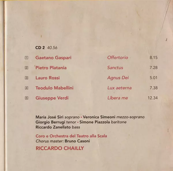 | Artiest | Orchestra Del Teatro Alla Scala | Coro Del Teatro Alla Scala | Riccardo Chailly |