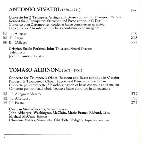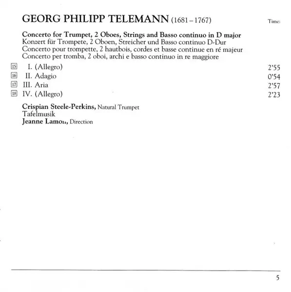 | Artiest | Tafelmusik Baroque Orchestra | Jeanne Lamon | Crispian Steele-Perkins |