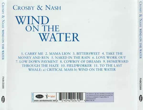Crosby & Nash: Wind On The Water versie op CD in standaard editie. Deze specifieke uitgave werd uitgebracht in Verenigd Koninkrijk bij uitgeverij Fabulous (3) op 6. juni 2011. Album valt binnen het genre Rock, Folk Rock en Country-Rock.