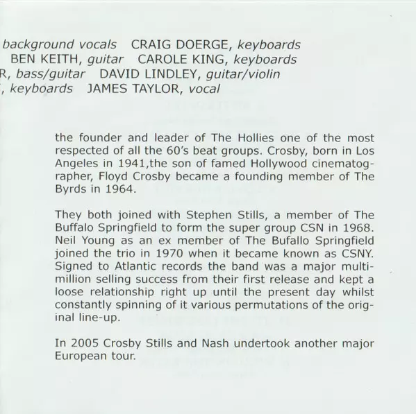 Bass Leland Sklar | Drums Russ Kunkel | Electric Guitar Danny Kortchmar, David Crosby | Electric Piano Craig Doerge | Organ Graham Nash | Piano [Acoustic Piano], Vocals [Additional], Harmony Vocals Carole King | Vocals Crosby & Nash | Words By, Music By David Crosby