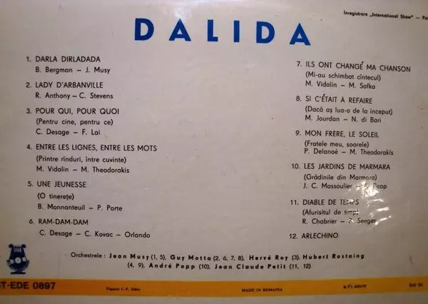 | Artiest | Dalida | Raymond Lefèvre Et Son Grand Orchestre |