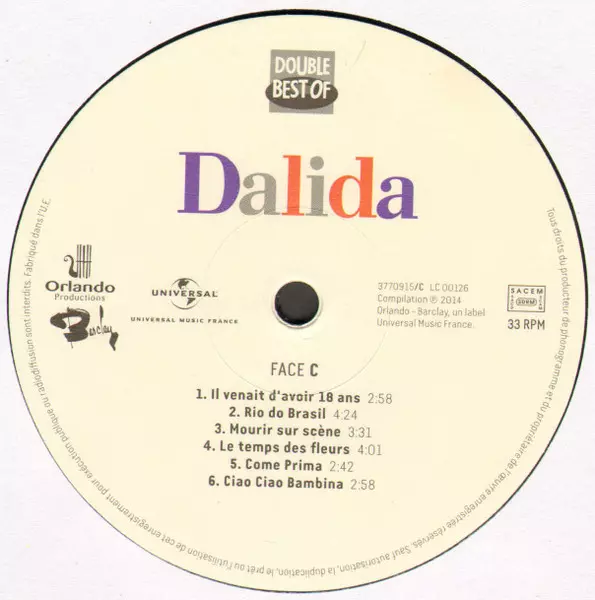 | Uitgever | Universal Music France | Barclay | Orlando Productions |