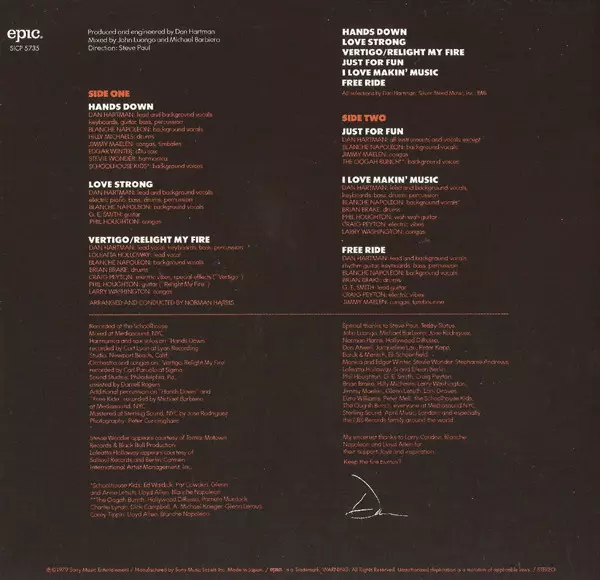 Backing Vocals Blanche Napoleon | Congas Larry Washington | Drums Brian Brake | Guitar [Wah Wah] Phil Houghton | Lead Vocals, Backing Vocals, Keyboards, Bass, Drums, Percussion Dan Hartman | Vibraphone [Electric Vibes] Craig Peyton