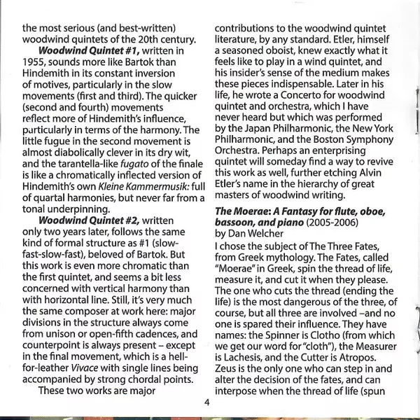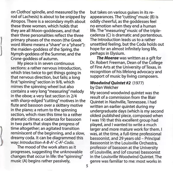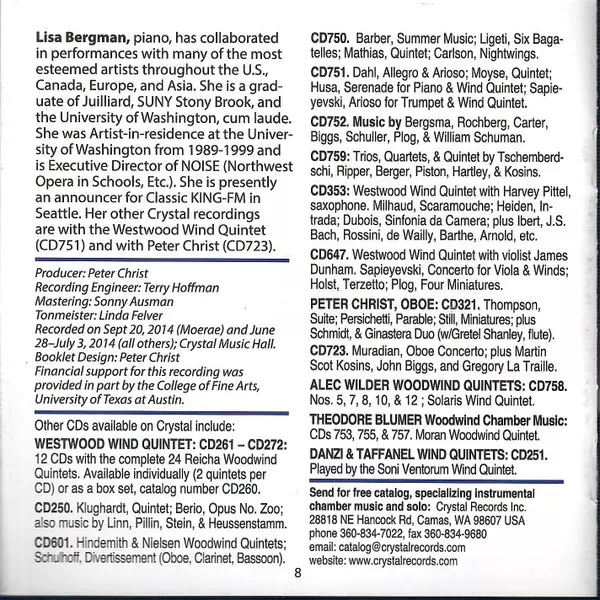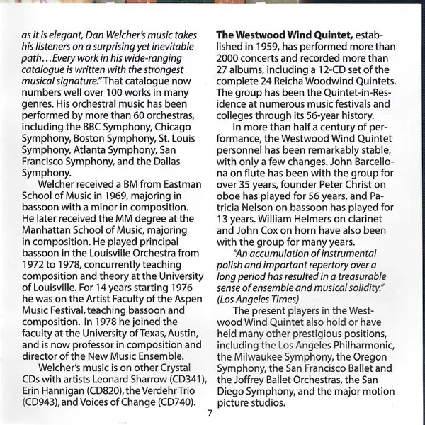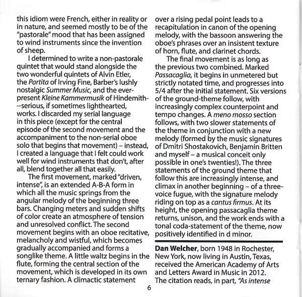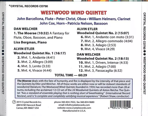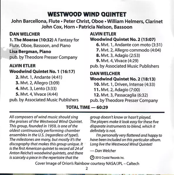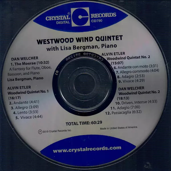 | Artiest | Dan Welcher | Westwood Wind Quintet | Alvin Etler | Lisa Bergman |