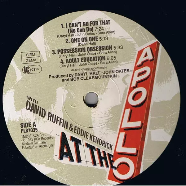 | Artiest | Daryl Hall & John Oates | Eddie Kendricks | David Ruffin |