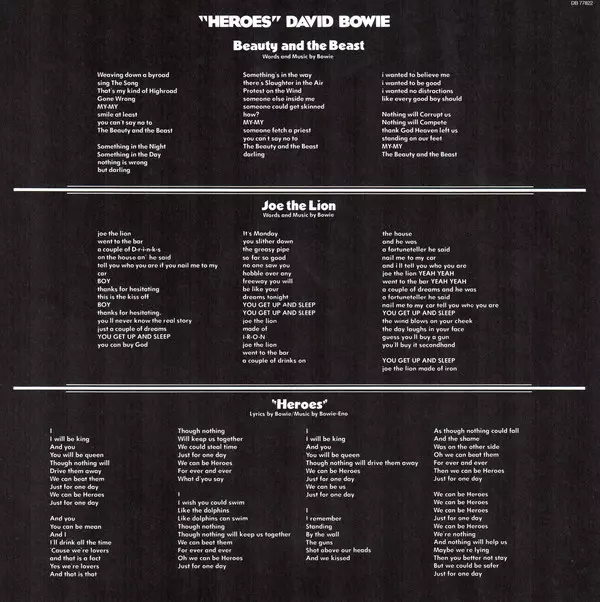 Just a few months after the recording of "Low", David Bowie returned to the Hansa recording studios in Berlin in July and August 1977 to record "Heroes", the second part of his creative period, later called the "Berlin Trilogy". "Lodger", the third part of the trilogy, was largely recorded in France, where Bowie moved in 1978. "Heroes" is the on...