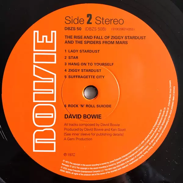 17. června 2022, 50 let a jeden den po původním datu vydání ve Velké Británii, vychází album "The Rise And Fall Of Ziggy Stardust And The Spiders From Mars" v limitované edici 50th Anniversary Half-Speed Mastered LP a picture disc se stejným masterem a replikou propagačního plakátu k albu. Tento nový výlisek alba "The Rise And Fall Of Ziggy Star...
