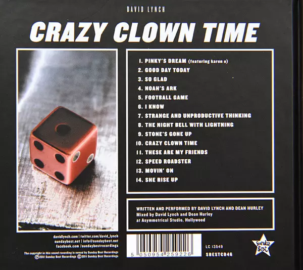 David Lynch: Crazy Clown Time versie op CD in standaard editie. Deze specifieke uitgave werd uitgebracht in Europa bij uitgeverij Sunday Best Recordings op 7. november 2011. Album valt binnen het genre Rock, Elektronische muziek, Alternative rock, Avant-garde en Blues-Rock. Book.