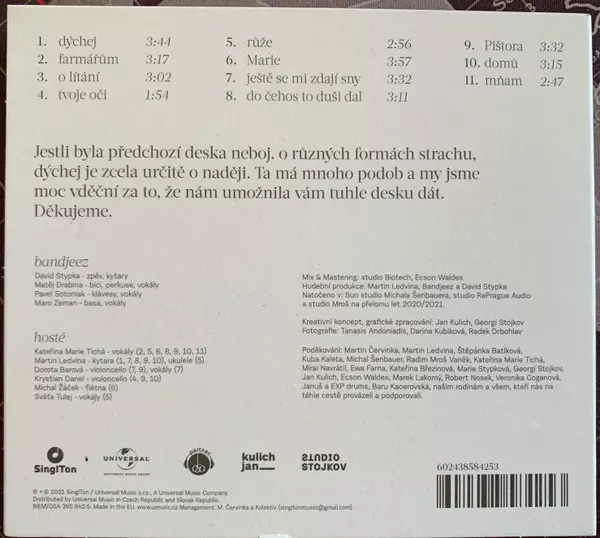 The album Dychej is the culmination of David Stypka's remarkable and inimitable musical journey. The charismatic singer-songwriter from the north of Moravia has prepared eleven original songs that exude hope and zest for life. It was completed by the singer's bandmates and friends from the band Bandjeez with producer Martin Ledvina.