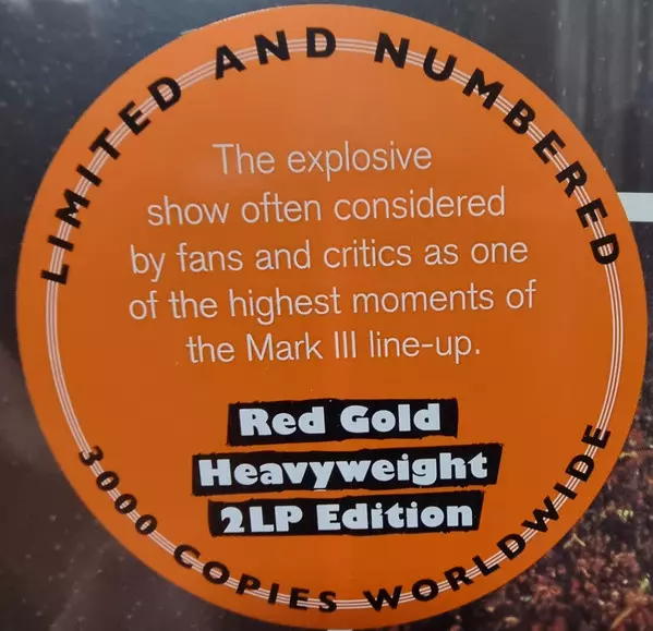 - Poprvé jako barevné LP na červeno-zlatém těžkém dvojitém vinylu - striktně limitováno a číslováno - 3 000 kopií po celém světě - sestava Mark III ve vrcholné formě - jeden z posledních koncertů s Ritchiem Blackmorem - Nahráno v mobilním nahrávacím studiu Rolling Stones pro brilantní zvuk