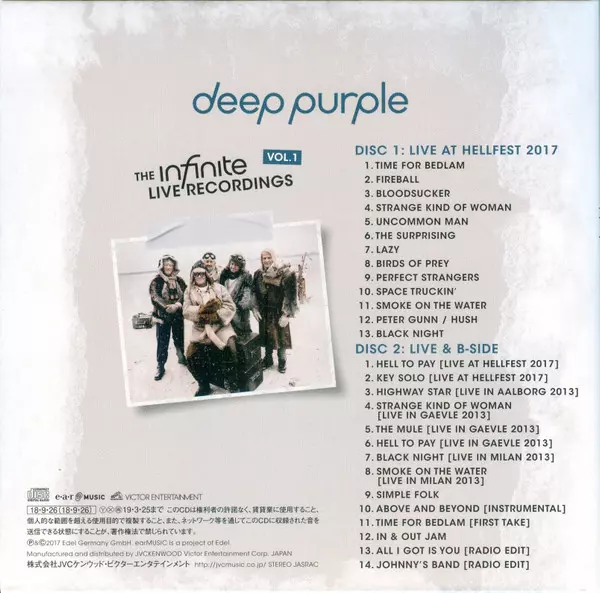 Deep Purple: The Infinite Live Recordings Vol.1 LTD versie op 2CD in limited editie. Deze specifieke uitgave werd uitgebracht in Japan bij uitgeverij Victor in samenwerking met Ear Music op 5. oktober 2018.