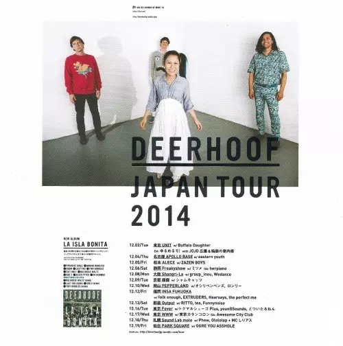 Deerhoof is an avant-garde noise pop band that originated in San Francisco in 1994. The group is known for its eclectic style, blending noise, sugary pop melodies, and experimental rock with a whimsical and absurdist aesthetic. The band's lineup has included Satomi Matsuzaki on voc...