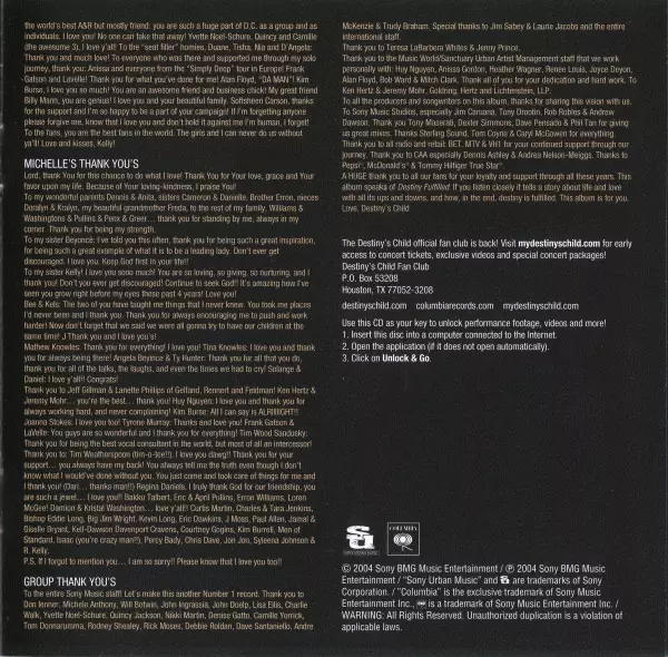 Destiny's Child: Destiny Fulfilled versie op CD in standaard editie. Deze specifieke uitgave werd uitgebracht in Europa bij uitgeverij Sony Urban Music in samenwerking met Columbia op 29. mei 2015. Album valt binnen het genre Pop, Funk / Soul en Contemporary R&B.