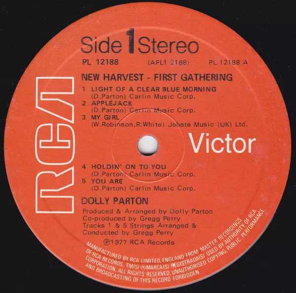 Dolly Parton: New Harvest ... First Gathering versie op vinyl LP in standaard editie. Deze specifieke uitgave werd uitgebracht in Verenigd Koninkrijk bij uitgeverij RCA Victor in het jaar 1977. Album valt binnen het genre Rock, Folk, World, & Country, Country en Country-Rock. Gatefold Orange Label Vinyl.
