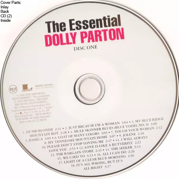 Dolly Parton: The Essential Dolly Parton versie op 2CD in standaard editie. Deze specifieke uitgave werd uitgebracht in Europa bij uitgeverij Sony BMG Music Entertainment in samenwerking met RCA en Legacy op 28. juni 2005.