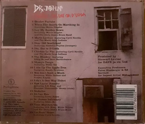 Dr. John: N'Awlinz: Dis Dat Or D'Udda versie op CD in standaard editie. Deze specifieke uitgave werd uitgebracht in Europa bij uitgeverij Parlophone op 13. juli 2004. Album valt binnen het genre Rock, Blues, Funk / Soul, Louisiana Blues en Bayou Funk.
