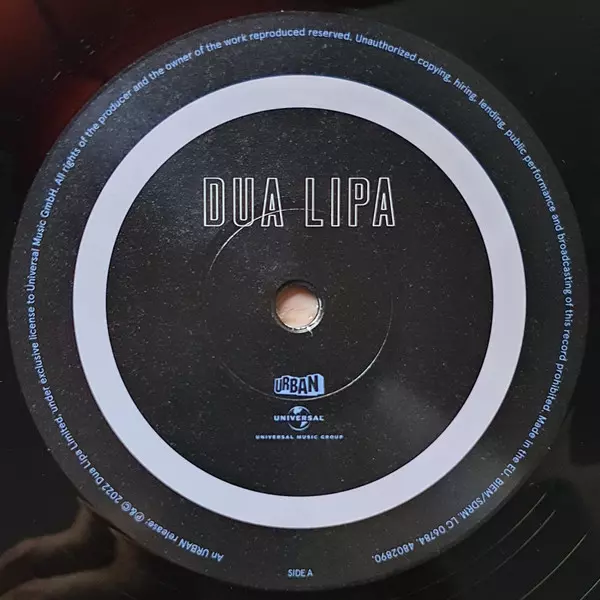 Dua Lipa: Dua Lipa versie op vinyl LP in standaard editie. Deze specifieke uitgave werd uitgebracht in Europa bij uitgeverij Urban op 8. juli 2022.