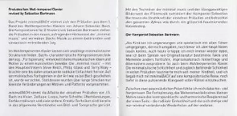 | Titel | minimalBACH (Preludes from Well-Tempered Clavier Revised By Sebastian Bartmann) |