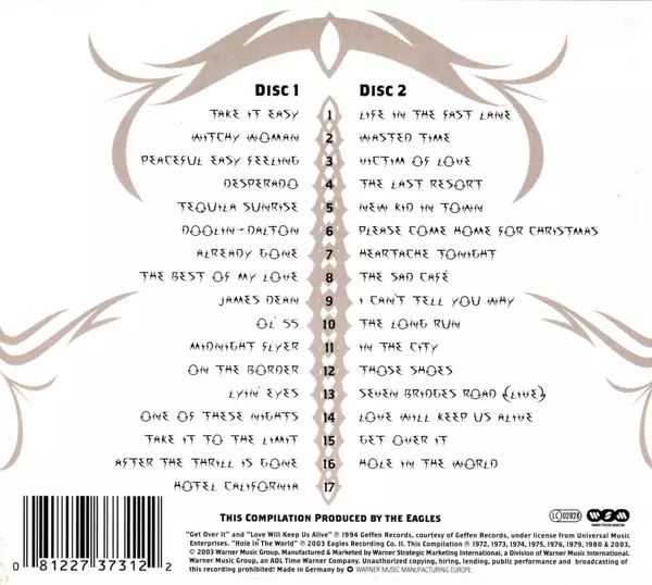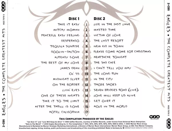 Eagles: The Complete Greatest Hits versie op 2CD in remastered editie. Deze specifieke uitgave werd uitgebracht in Europa bij uitgeverij Warner Strategic Marketing op 13. januari 2008.