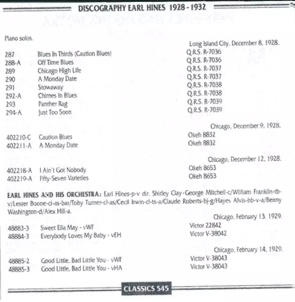 | 4 | Earl Hines: A Monday Date | 2:53 min | |