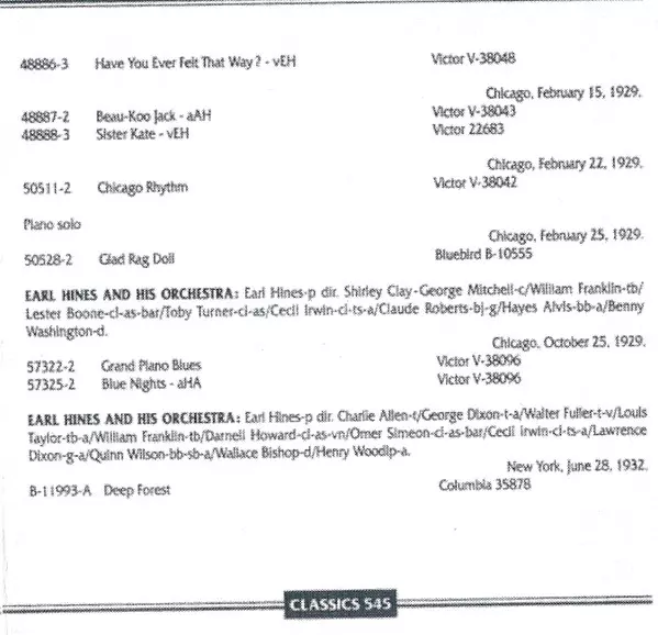 | 22 | Earl Hines And His Orchestra: Grand Piano Blues | 2:55 min | |