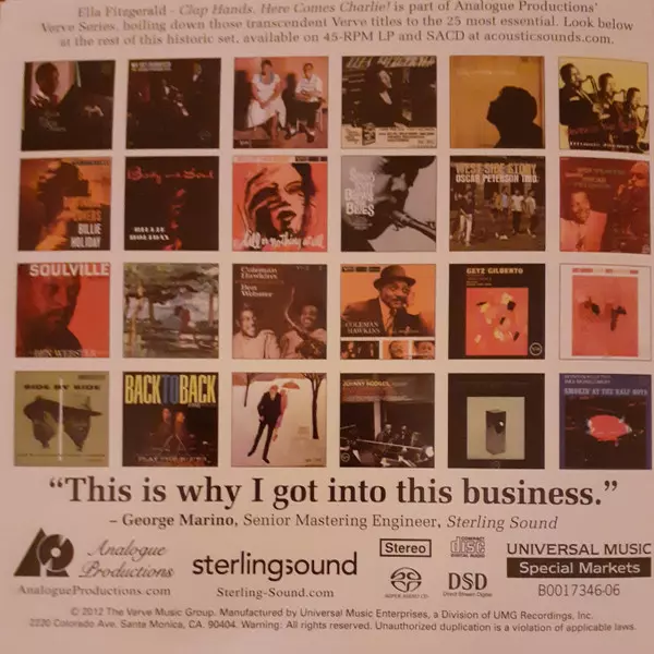 | Uitgever | Analogue Productions | Universal Music Special Markets | Verve Records |