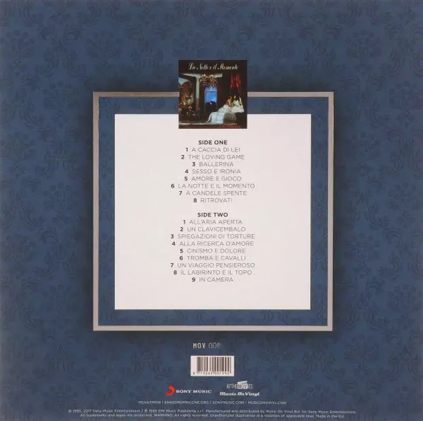 This album is the soundtrack to the 1995 Italian film La Notte E Il Momento. The music is composed and conducted by Ennio Morricone, featuring the London Symphony Orchestra. The album was released on CD by BMG Records in 1995.