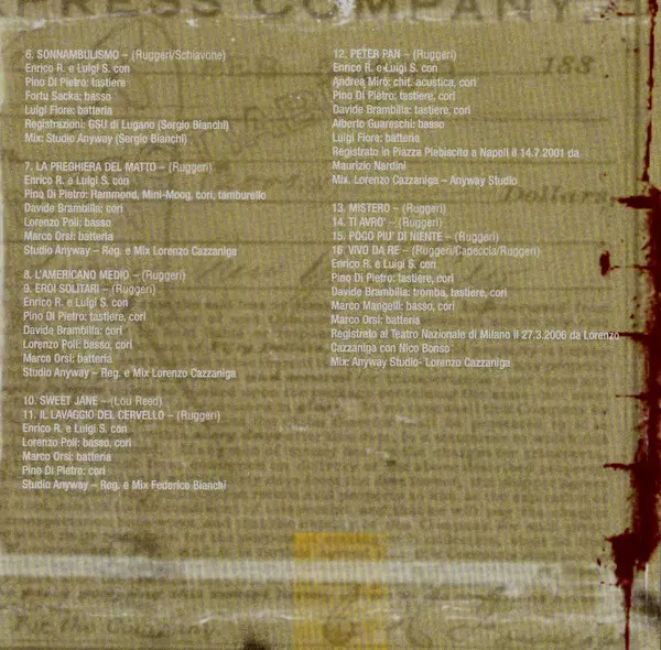 Accordion, Backing Vocals Davide Brambilla | Backing Vocals Andrea Mirò | Bass Lorenzo Poli | Clarinet Michele Brambilla | Drums, Soloist [“All Alone...”] Marco Orsi | Grand Piano, Backing Vocals Pino Di Pietro | Performer Enrico Ruggeri, Luigi Schiavone | Recorded By, Mixed By Lorenzo Cazzaniga | Written-By Enrico Ruggeri