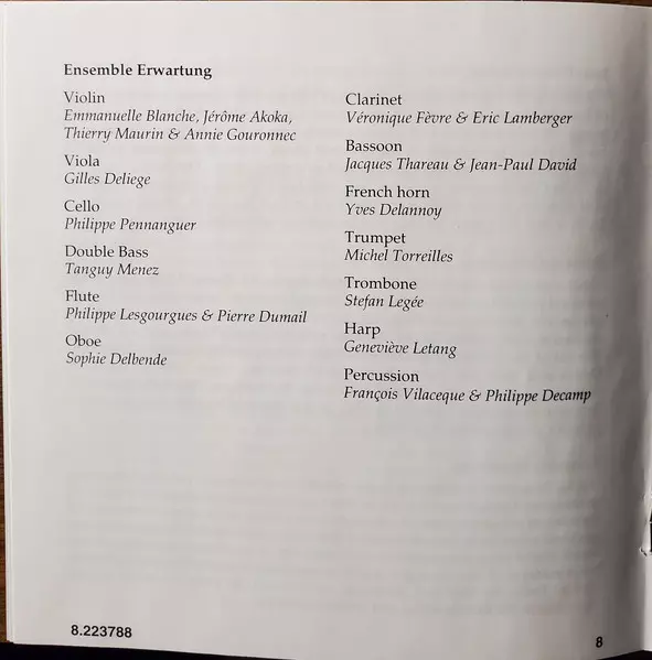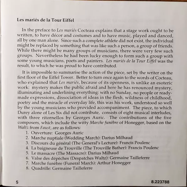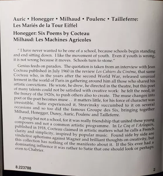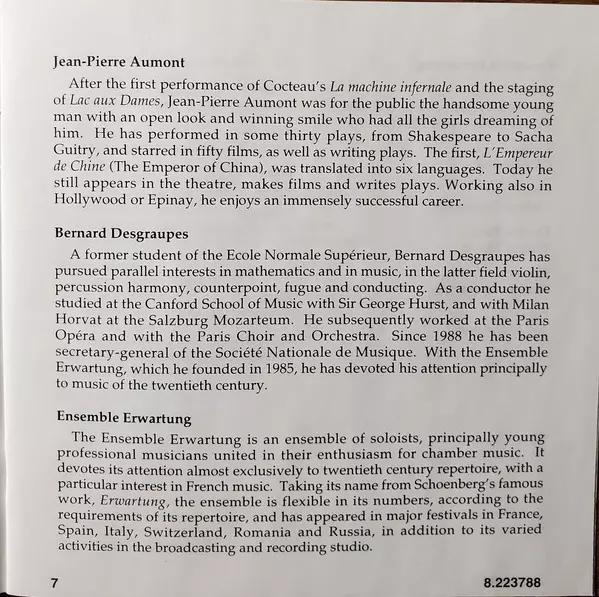 | Artiest | Arthur Honegger | Darius Milhaud | Georges Auric | Francis Poulenc | Germaine Tailleferre | Ensemble Erwartung | Bernard Desgraupes |